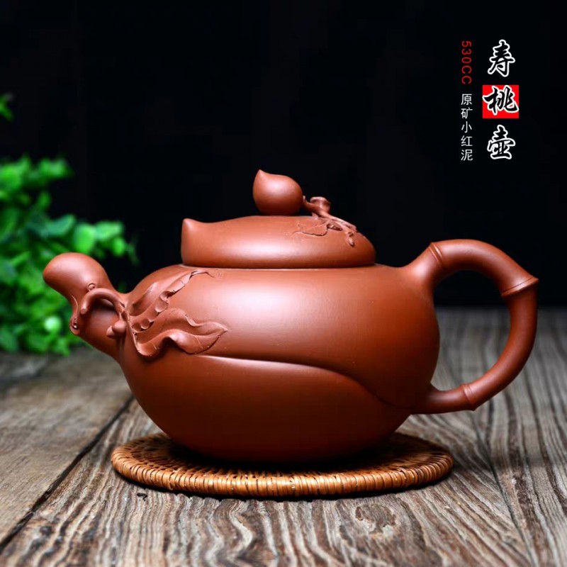 原矿小红泥“寿桃壶”530cc 工艺师徐萍